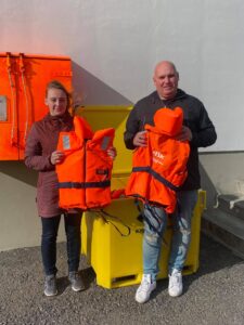 Á dögunum afhenti FISK Seafood Skagafjarðarhöfnum að gjöf tvo kassa með björgunarvestum. Kassarnir verða staðsettir annars vegar austan við Hafnarhúsið á Sauðárkróki og hins vegar